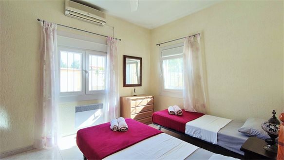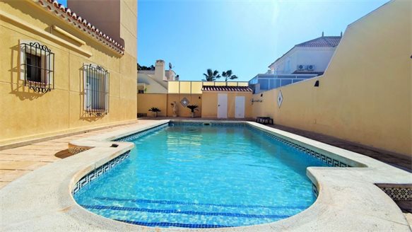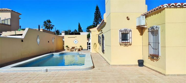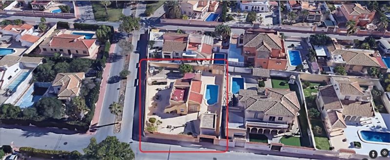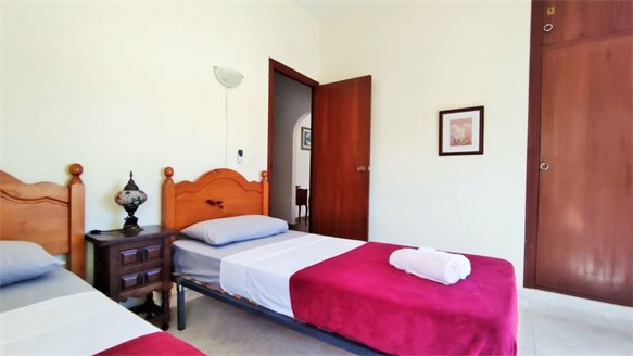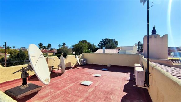 Outside spaces are huge and consists of pool and BBQ area, large gardens around the villa and a sunny roof terrace that can be reached through exterior stairs with wonderful view towards the pink lake and surrounding area. The villa has access via two gates to two quiet streets and one gate has direct access to a large garage & storage and the other gate has large parking space for 2 cars. Torreta Florida is a beautiful and green residential area with large villas and quiet streets with mixed inhabitants (mostly Spanish) as most people live there all year round. Within walking distance to all amenities, shops, bars, restaurants and a large shopping mall. Sandy beaches in Torrevieja in less than 10 minutes drive and Alicante airport in just 50 km from the house.