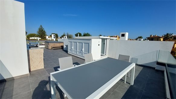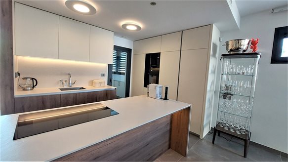 The kitchen is fitted with white worktop units, Silestone worktops and fully equipped with top quality appliances including oven, microwave, ceramic hob, fridge, washing machine and dishwasher.