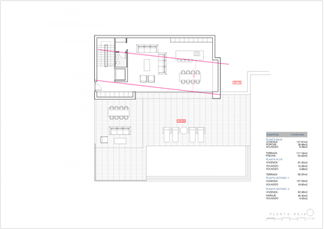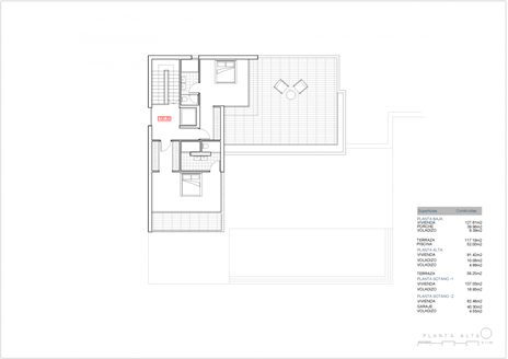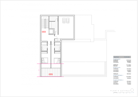 The finishes of the villa are made of paneled exposed concrete. It is distributed over 4 floors which includes an elevator as well as an internal staircase. On the ground floor there is a spacious living-dining room with an open kitchen and a courtesy toilet. The kitchen is fully equipped and in the center there is an island as a work space. Sliding doors reach to the ceiling and give direct access to a large terrace with a swimming pool. On the upper floor there are two large bedrooms with en-suite bathrooms and a terrace.
