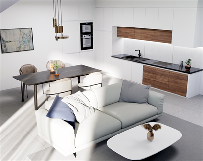 The complex consists of 12 villas, each with 2 bedrooms and 2 bathrooms, and one corner villa that has 3 bedrooms and 3 bathrooms. The terraces enjoy double orientation, the front and back gardens are laid to lawn, there is a private south-facing solarium, an optional 5.5 x 2.5 m private swimming pool, and a parking space of your choice included in the price.