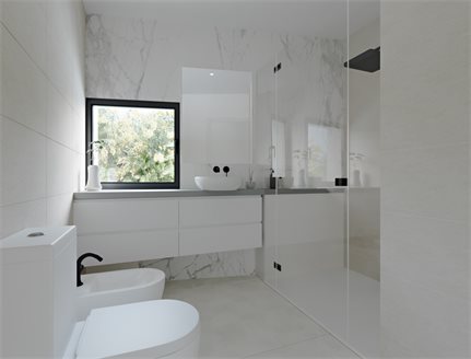 Villa is located on a plot of 667 square meters, two minutes from the beach. The unique and clever design allows the Mediterranean wind from the south to travel through every corner of the home and bring a much needed breeze into the home. The property is conveniently divided into 4 bedrooms, 3 full bathrooms and one additional with a toilet.