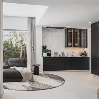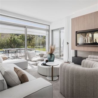 This development comprises nine detached and independent villas that vary slightly in terms of size, style and distribution, but all built in harmony with the same specifications and finishings. Each villa is built on three floors and has a south-east orientation, comprising on the ground level a spacious and stylish open plan living and dining area with integrated modern and practical kitchen built with high-end German appliances, combining smart technology with warm architectural design.