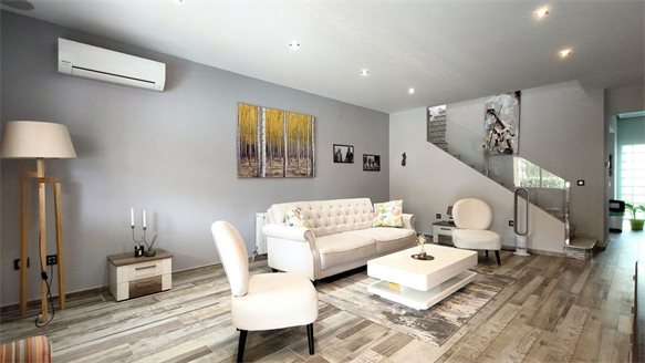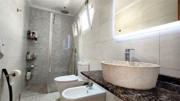 Internals stairs via the living room lead onto the upper floor consists of a small office and large master bedroom and it en suit bathroom as well as access to a massive roof terrace with amazing views to the surrounding area. The house is totally and carefully renovated in 2018 with top quality materials from the floor to the roof, interior and exterior and is sale fully furnished , equipped with central heating, air conditioning in all rooms, fantastic lighting inside and outside, electric gate and much more… It is a villa to be loved and we guarantee that you will love it much more when you see it in real.