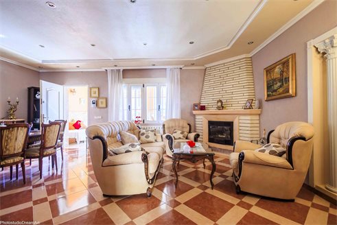 Semi-detached villa for sale with swimming pool and garage near the beach of Cabo Roig.The villa stands on a plot of 510m2 and has a fantastic outdoor area: garage for 2 cars, a swimming pool with slide, outdoor kitchen with barbecue, a veranda, sun and seating areas, storage space, etc. The villa has 5 bedrooms, 2 bathrooms, a guest toilet, a separate fitted kitchen with dining area and a door to the outside and a livingroom with fireplace. A/C and ceiling fans.The beautiful beach of Cabo Roig is only 1,3km, 3km to the golf course and 1,5km to the popular shopping center La Zenia Boulevard. All possible amenities nearby.