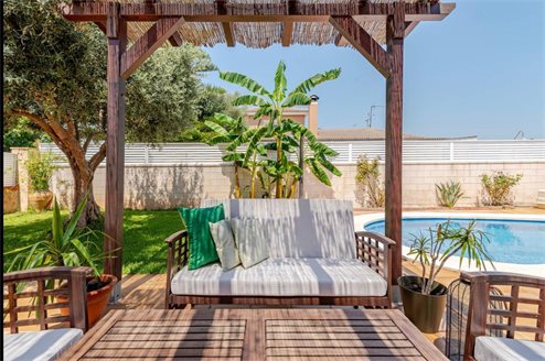 The house of 88 m2 has a very bright living-dining room with an integrated fully furnished and equipped kitchen, 3 bedrooms, 1 bathroom. On the plot of 124 m2 there is a private pool and garden, a sunny terrace with an outdoor dining area and a summer kitchen with a barbecue oven.