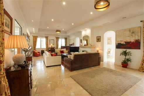 Inside, the bright and spacious living room is perfect for relaxation, while the dining area and fully equipped kitchen provide a modern and functional environment. The villa features seven large bedrooms, each with built-in wardrobes, and seven full bathrooms, ensuring privacy and comfort for the whole family.