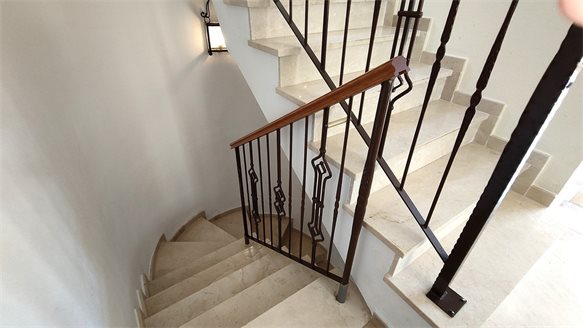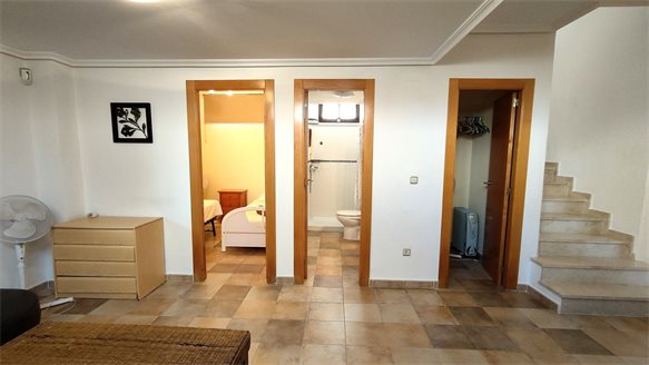 Internal stairs lead to the under floor, a versatile space featuring a lounge, two bedrooms, a bathroom, and a storage room, offering comfort and privacy for guests. Ascend to the upper floor to discover two bedrooms, with the master bedroom boasting a cozy south-facing terrace bathed in sunlight all day. A large bathroom and another shaded terrace provide a perfect balance of relaxation and comfort.