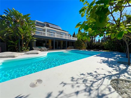 Luxurious property completely renovated with modern interior design. The 1035 m2 plot has a private heated swimming pool, barbecue area, covered and outdoor terraces with a separate kitchen for wonderful summer days with family and friends.