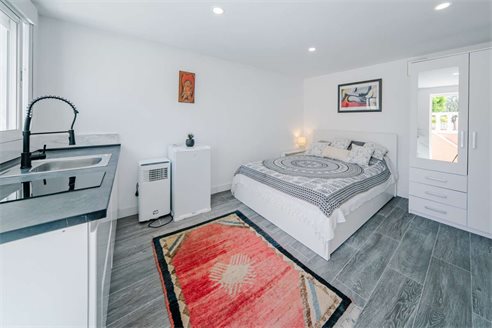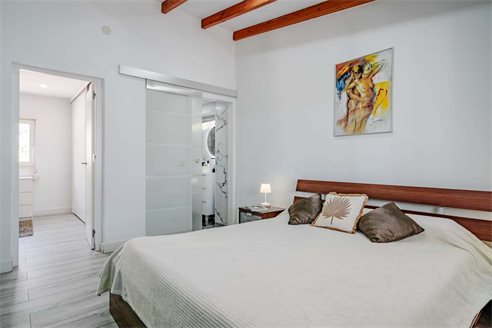 There is also another room in the house which is currently used as a dressing room but could be converted into a third bedroom. The house is also equipped with a closed garage and an independent guest apartment consisting of a bedroom equipped with a small kitchenette and a bathroom. On the plot there is a swimming pool, a pergola, a barbecue area, a toilet and a shower for the pool area. The location of the house is very convenient since the nearest beach is just over 2 km away, as well as supermarkets and all the necessary services. Contact us to organize a visit to this wonderful villa.