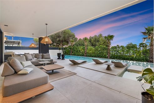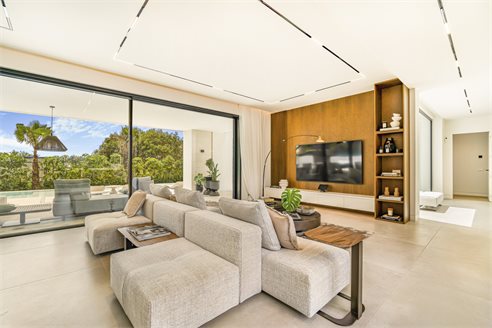 Unique Features This eco-friendly, well-planned and functional 3-level house of 813 m² has been designed and built with excellent quality materials, wooden floors, large windows that allow natural light to enter all rooms while connecting nature and architecture. The 1.050 m² plot provides the special Mediterranean atmosphere that dominates the Marbella area. It also has majestic pine trees that actively participate in the creation of this compelling atmosphere. This smart luxury house comes for sale with sophisticated lighting and ceiling design, ceiling cooling system, home automation, alarm, automatic irrigation system, BBQ, fitted wardrobes, double glazing, etc.