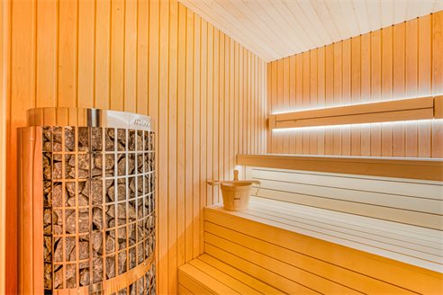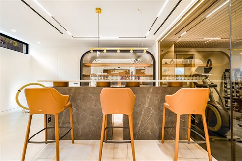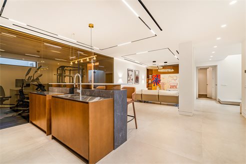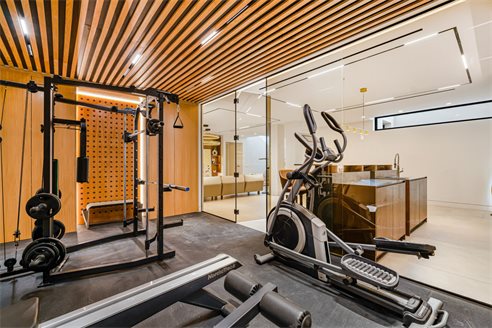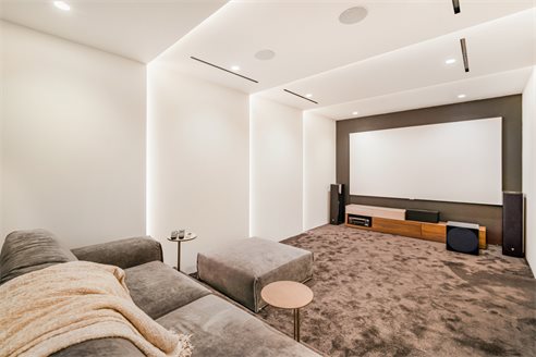 Basement area The basement area hosts a Finnish sauna, gym, spacious bedroom, store room, cinema room, guest toilet, TV zone and individually designed bar. The furniture and carpets are provided by famous Italian brands "Bonaldo", "Ditre" "Talenti". Extra features include the alarm system, underfloor heating throughout, air conditioning and wooden floors in the bedrooms. In addition, there is a space to park 3 cars.
